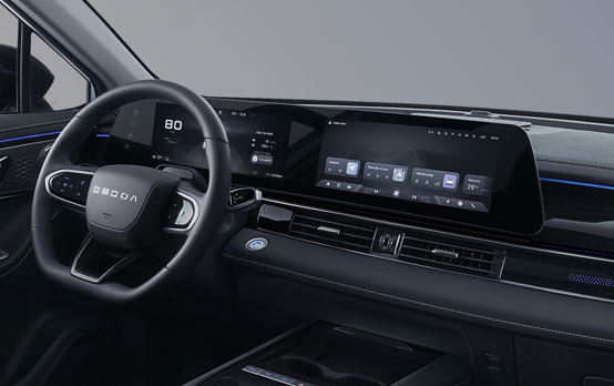 Wnętrze OMODA 5 łączy nowoczesny styl z wysokiej jakości materiałami, oferując przestronność i komfort. Wyróżnia się ergonomicznymi fotelami, futurystycznym kokpitem oraz zaawansowanymi technologiami, takimi jak asystent głosowy Hello OMODA czy nowoczesny system multimedialny.